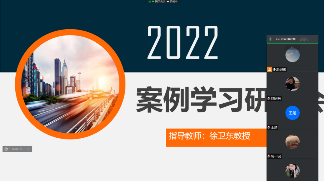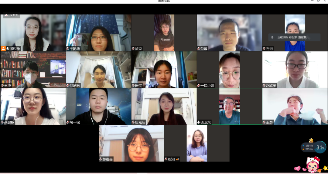 2020年4月2日下午,必赢76net线路徐卫东教授通过腾讯视频的线上会议组织师门博士硕士研究生进行了一场案例分析研讨会,2020级博士生潘思豫、2021级博士生范蠡参与组织并主持了会议,在寝室封闭的一、二年级硕士生全部出席并积极参与到了研讨会中来。